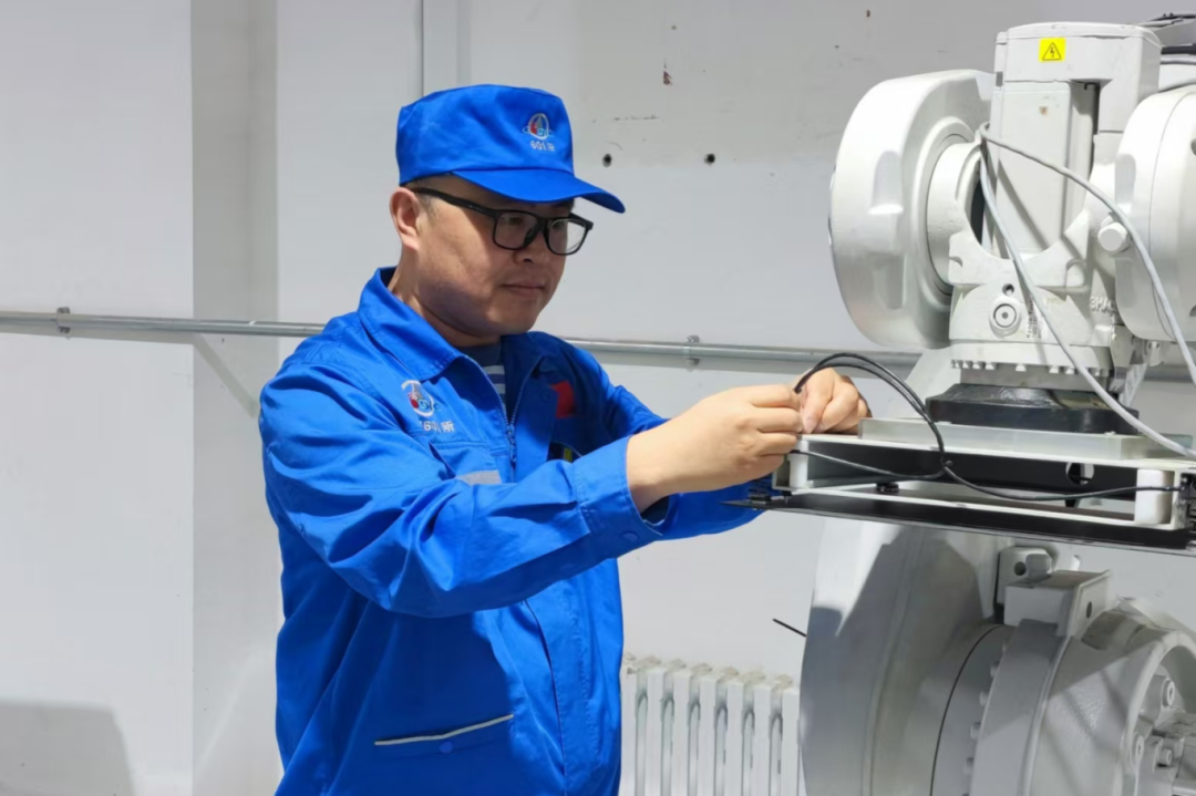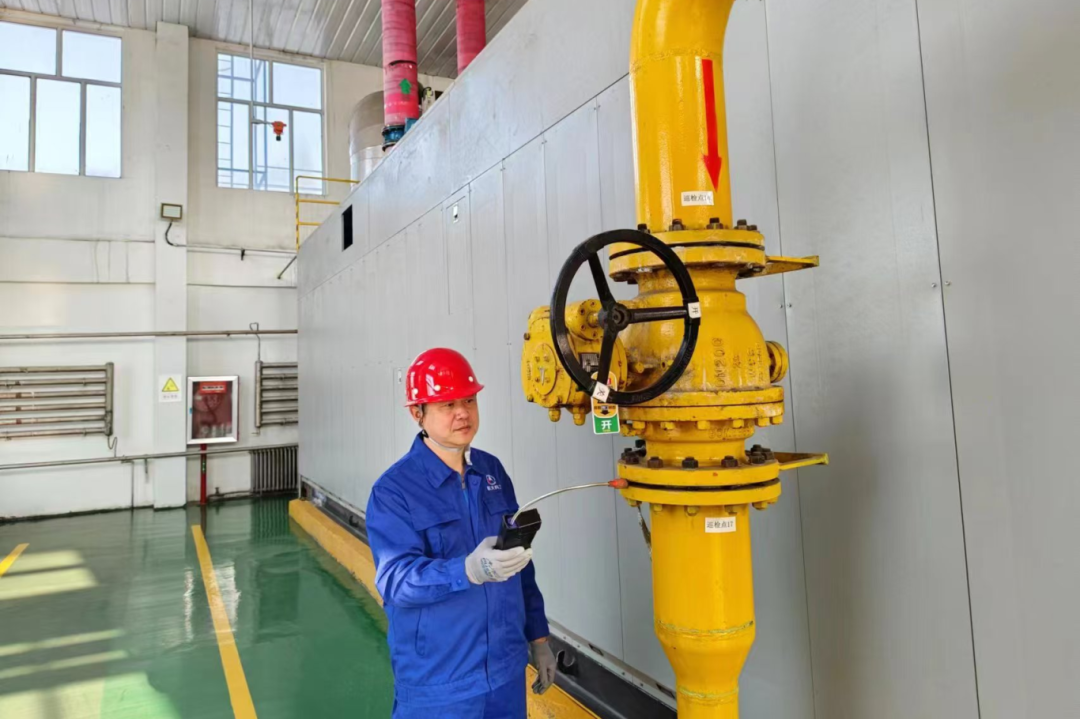六院科保動力分公司水暖運行組職工正在檢測廠區供暖系統燃氣管道,確保供暖運行安全,保障六院科研生產不受氣溫驟降的影響。