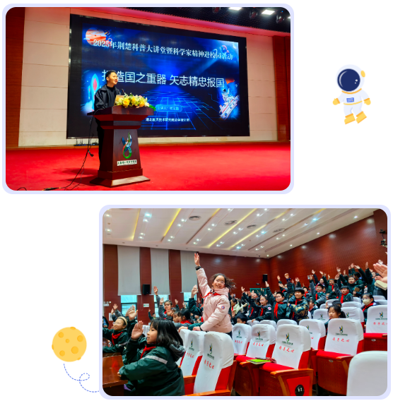 “快舟青年科普志愿服務隊”走進武漢常青樹實驗學校(三店校區(qū)),為200余名八年級學生送去航天知識課。火箭公司志愿者以“中國夢 航天夢 快舟夢”為主題,從人類探索太空歷史引入,將航天產(chǎn)品應用與空間望遠鏡、導航軟件、衛(wèi)星電話等生活常見物品關聯(lián),拉近航天知識與學生的距離。