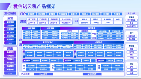 愛(ài)信諾云稅秉持“讓財(cái)稅管理更簡(jiǎn)單、更智能、更有價(jià)值”,提出業(yè)務(wù)流程一體化、數(shù)據(jù)資產(chǎn)一體化、風(fēng)險(xiǎn)管控一體化、業(yè)財(cái)稅融合一體化“四個(gè)一體化”理念。產(chǎn)品采用“三端一平臺(tái)”架構(gòu),即SaaS云端、移動(dòng)端、運(yùn)營(yíng)管理端、連接服務(wù)平臺(tái),覆蓋銷(xiāo)項(xiàng)管理、進(jìn)項(xiàng)管理、電子憑證管理、費(fèi)控報(bào)銷(xiāo)、電子檔案管理、全稅申報(bào)、合規(guī)風(fēng)控等核心模塊,構(gòu)建“開(kāi)、收、用、管、報(bào)”全鏈路閉環(huán)。