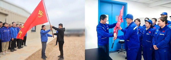 授旗儀式上,所領(lǐng)導(dǎo)為黨員突擊隊(duì)代表、青年突擊隊(duì)代表授旗。突擊隊(duì)隊(duì)長(zhǎng)介紹隊(duì)名、人員組成和任務(wù)目標(biāo)。