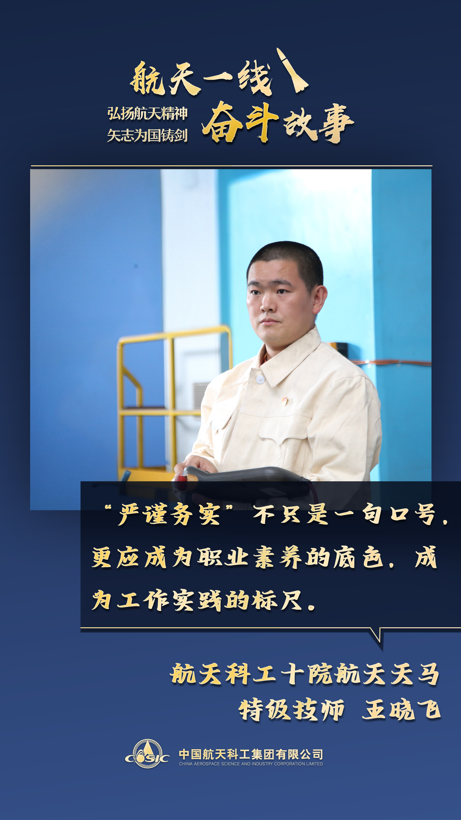 風(fēng)趣幽默的談吐與精湛老練的焊接技藝,兩種看似截然不同的特質(zhì)在王曉飛這個焊接“大師傅”身上統(tǒng)一起來。他將焊接工作化作一門藝術(shù),出自他手的焊縫均勻、美觀、質(zhì)量可靠,成為“嚴(yán)慎細(xì)實”的生動體現(xiàn),這就是新時代航天人的熱血擔(dān)當(dāng)。(文/馬鴻 海報/張彤、杜宜桓)