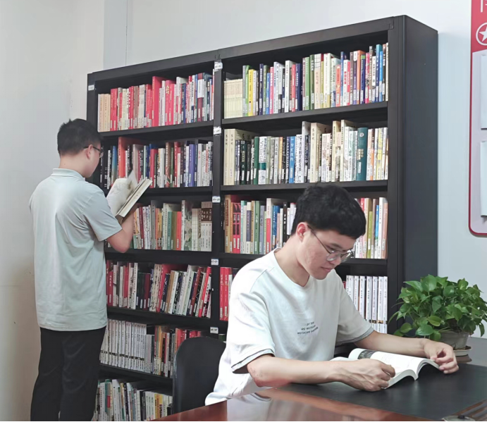圖書角里,專業(yè)書籍、文學(xué)名著整齊排列,技術(shù)部門小李表示:“上次項(xiàng)目遇難題,來(lái)這里翻書找靈感,和同事一聊,思路就有了。”